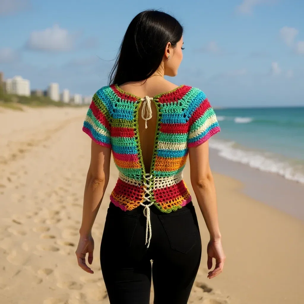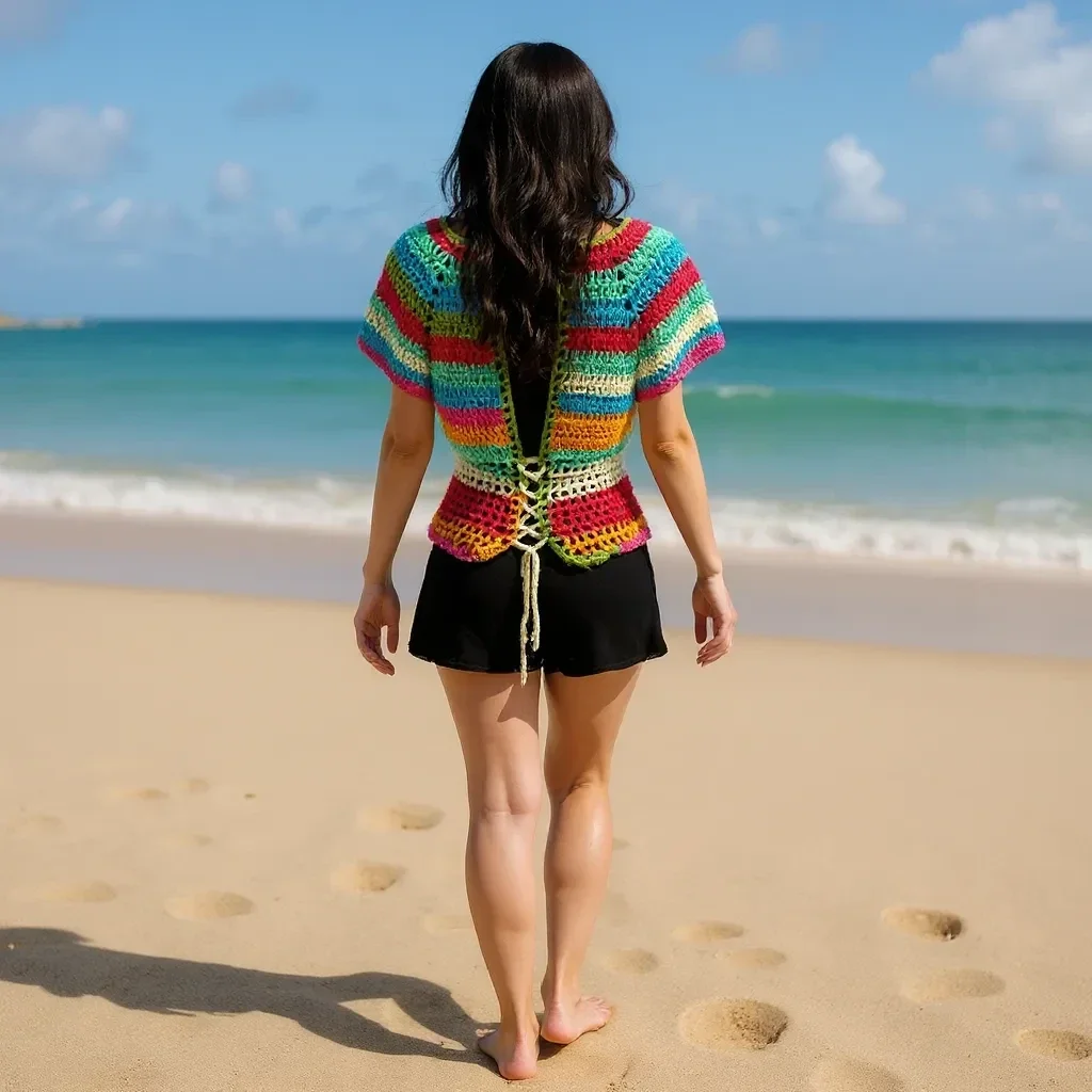 Haut Rainbow en crochet fait main en un seul exemplairePièce uniqueTaille 38 / 40Composition : 100% cotonLavage : main