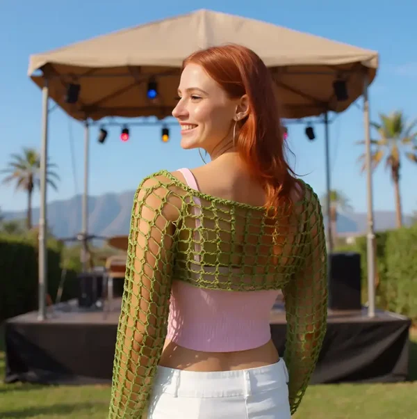 Crop top Azeituna fait main au crochet en un seul exemplairePièce uniqueTaille du mannequin : 36 / 38Taille uniqueComposition : 100% cotonLavage : main