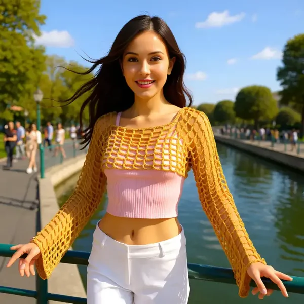 Crop top Caramela fait main au crochet en un seul exemplairePièce uniqueTaille du mannequin : 36 / 38Taille uniqueComposition : 100% cotonLavage : main