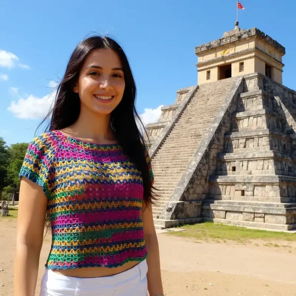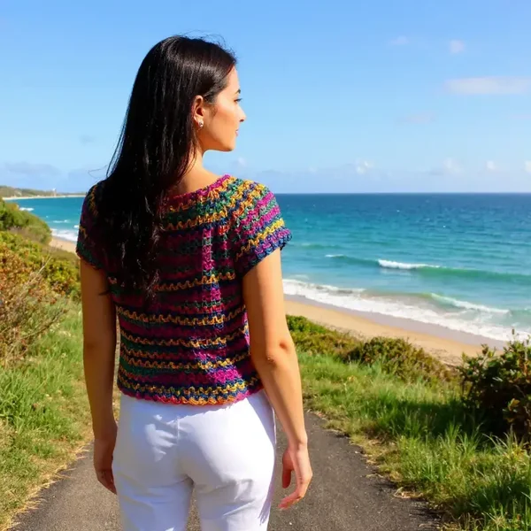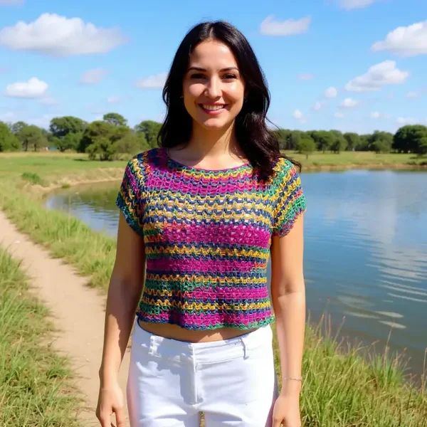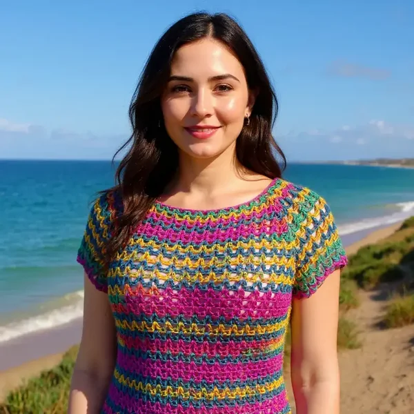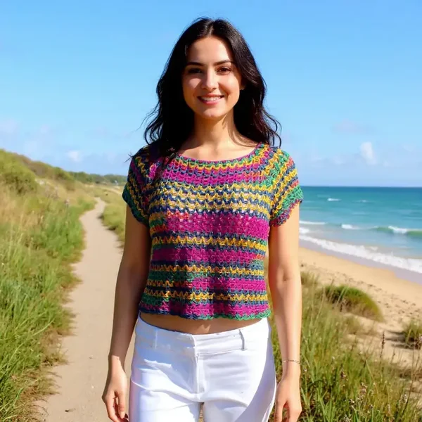 Haut Azteca en crochet fait main en un seul exemplairePièce uniqueTaille : 38 / 40Composition : 27% polyester et 73% viscoseLavage : main