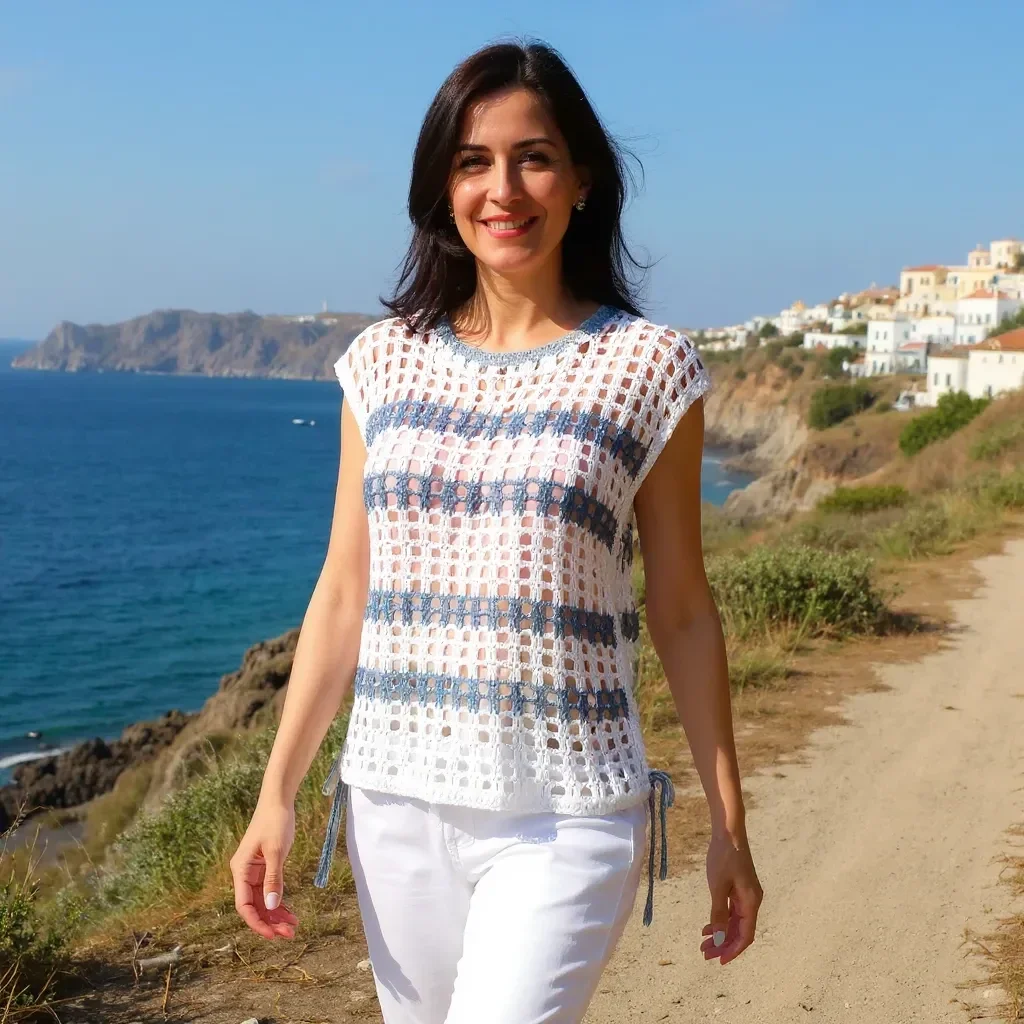 Haut Ellada en crochet fait main en un seul exemplairePièce unique Taille : 38 à 42Composition : 100% cotonLavage : main