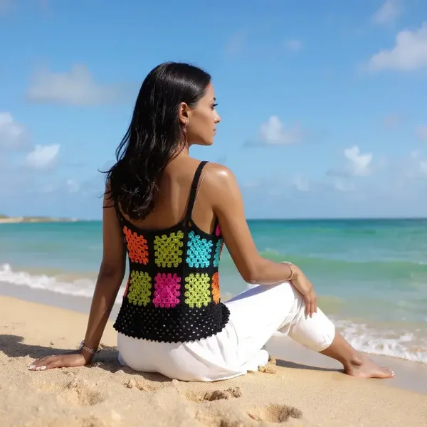 Haut Mawarna fait main au crochet en un seul exemplairePièce uniqueTaille : 40Composition :100% cotonLavage : main