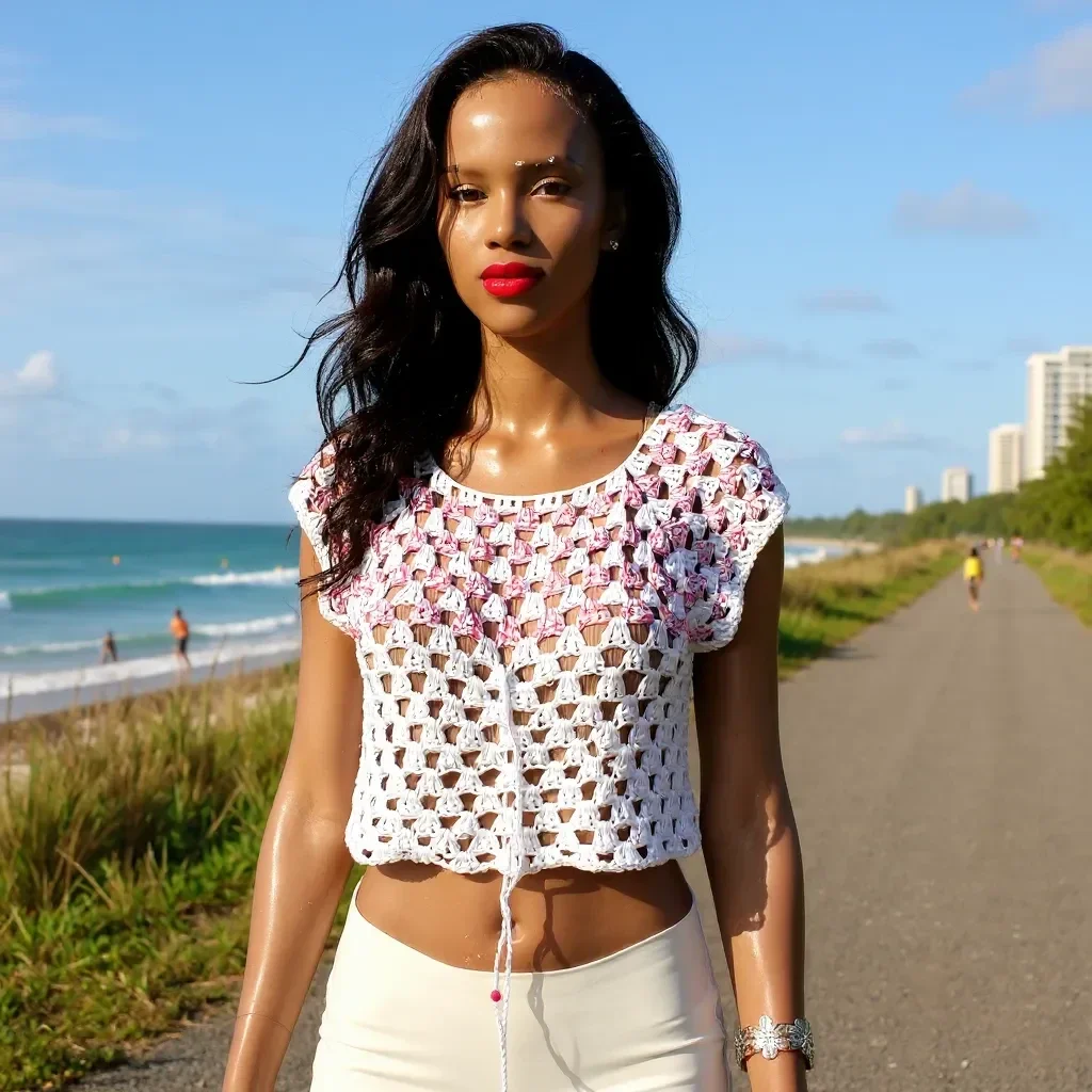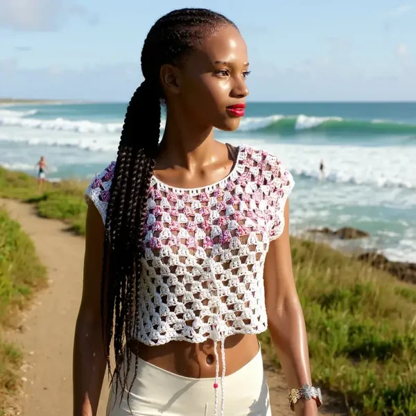 Haut Freshy en crochet fait main en un seul exemplairePièce unique Taille : 38Composition : 100% cotonLavage : main