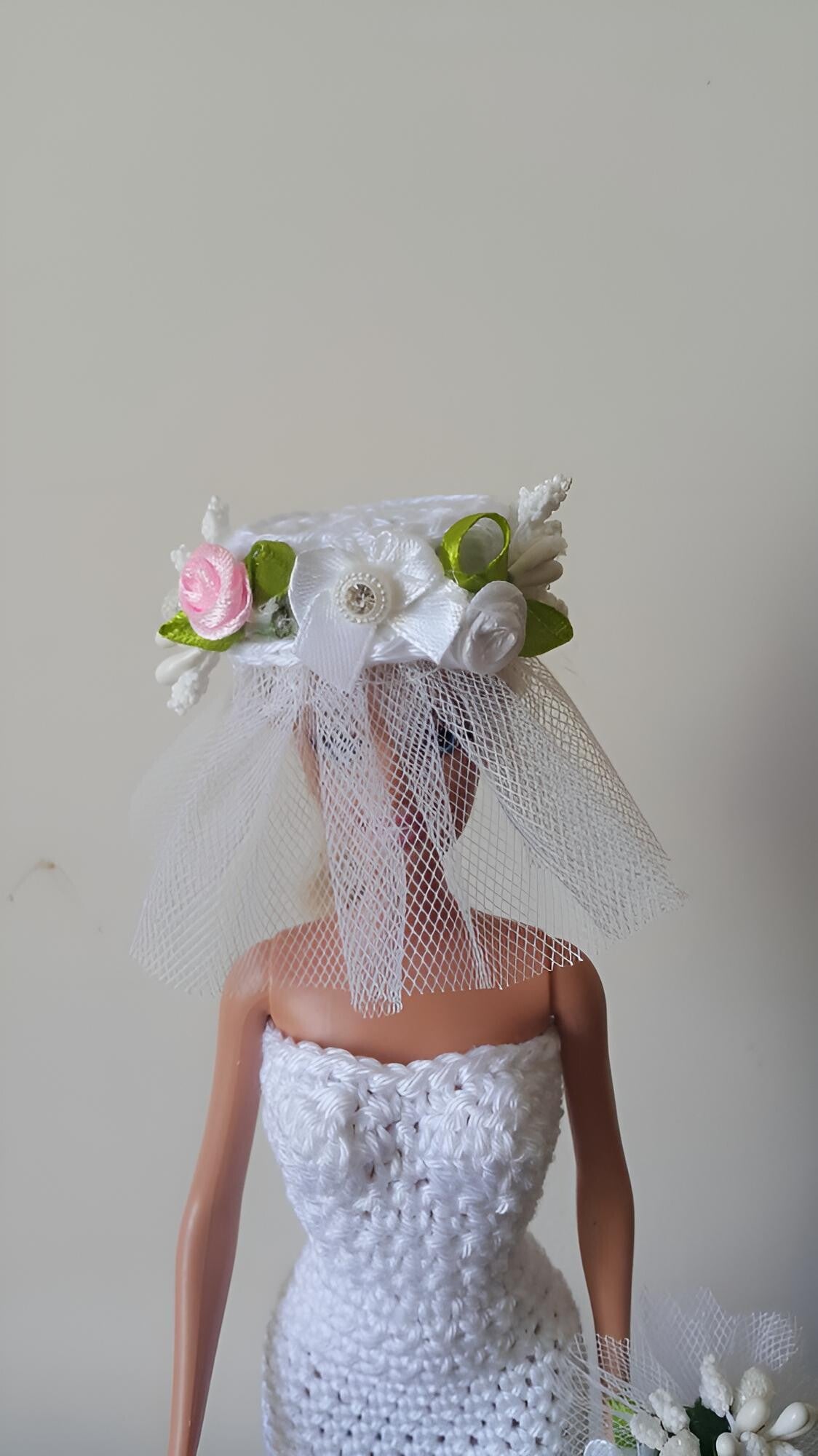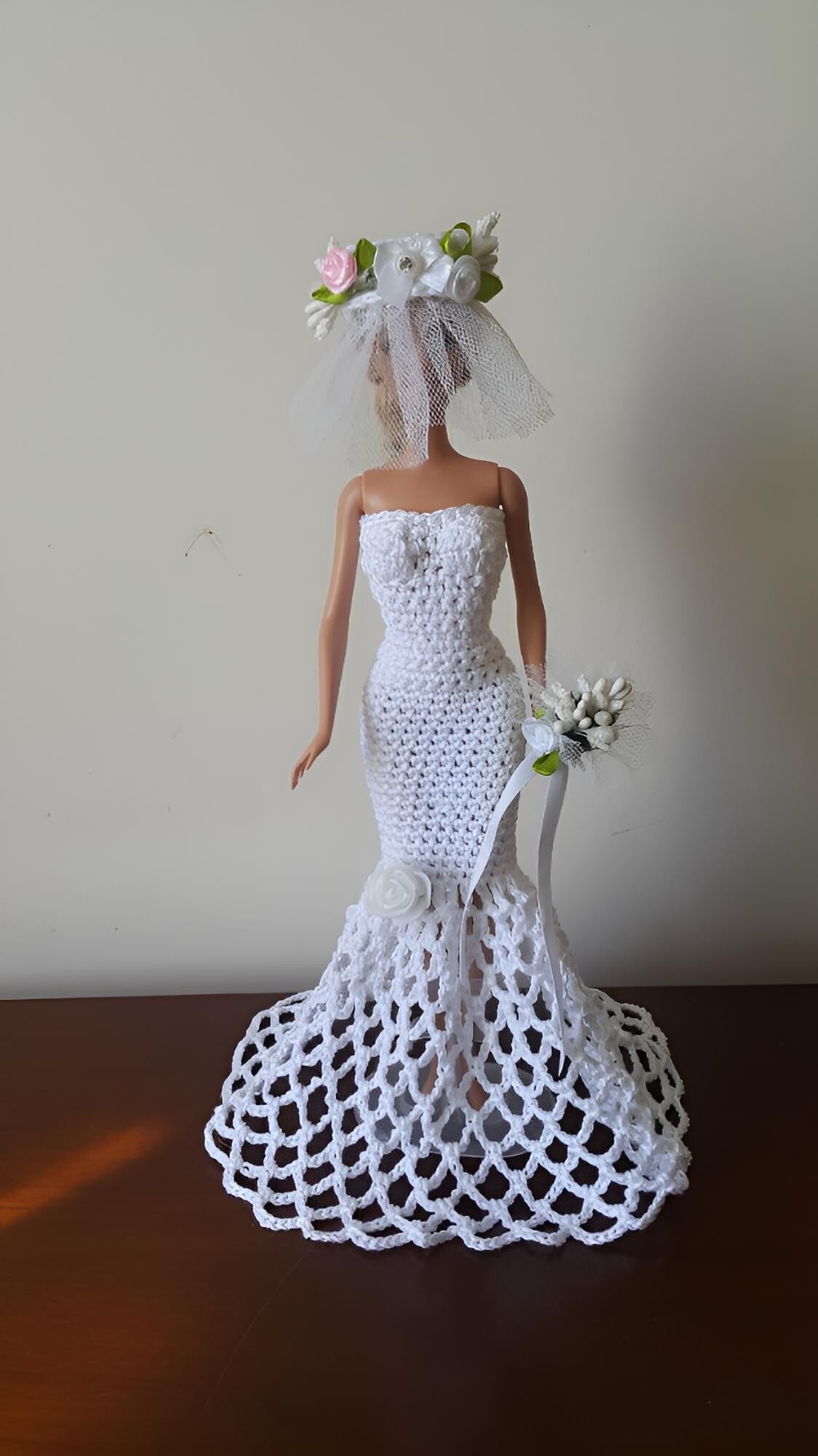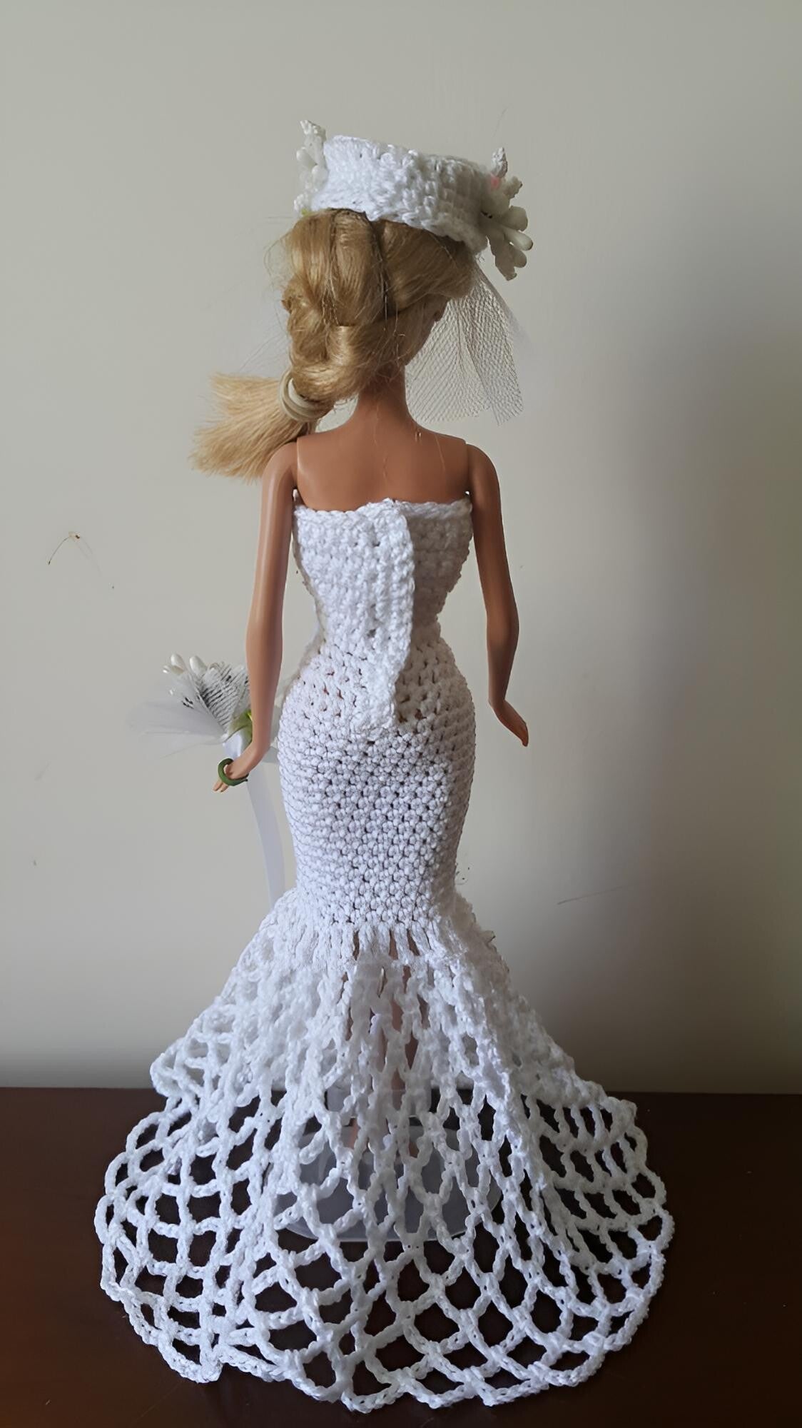 Ensemble unique Vive la mariée pour poupée Barbie fait au crochet en un seul exemplaire