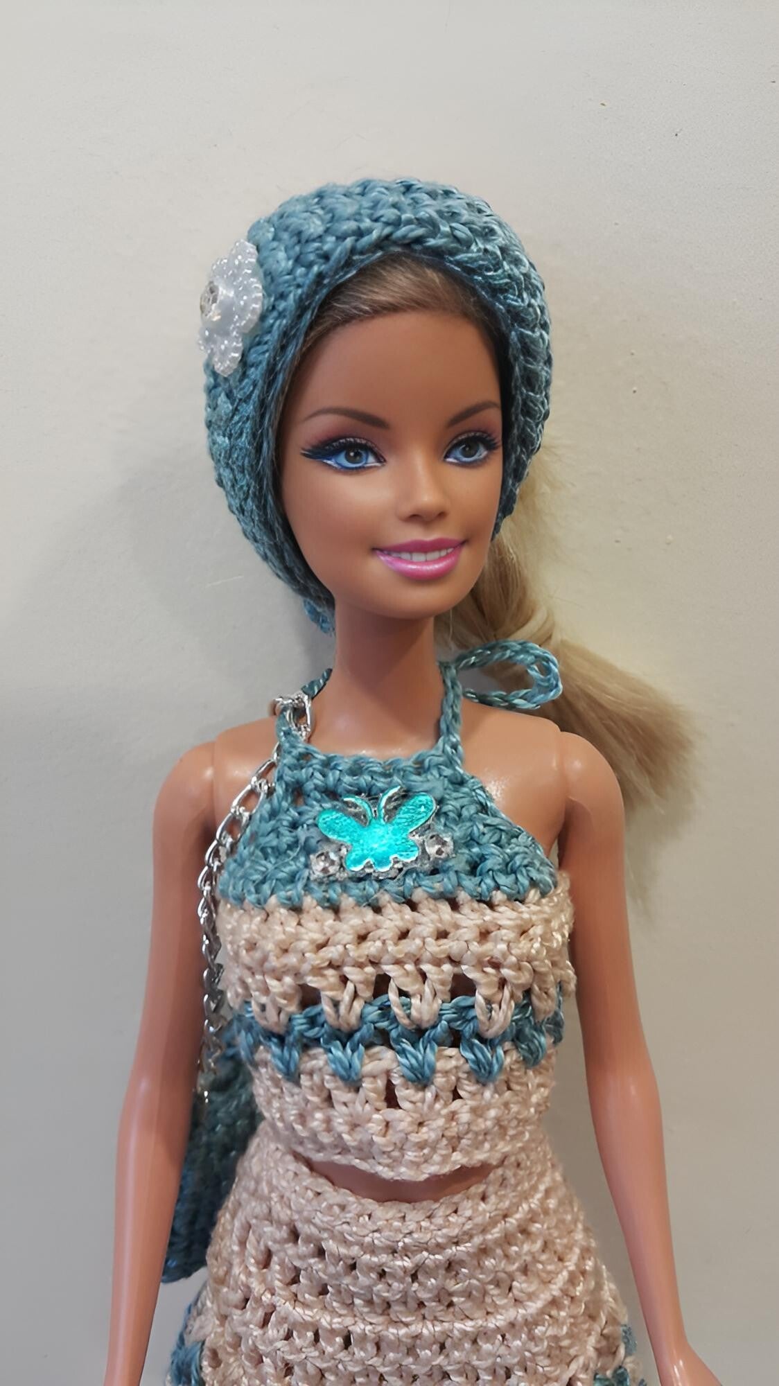 Ensemble unique Moi, c'est Julie pour poupée Barbie fait au crochet en un seul exemplaire
