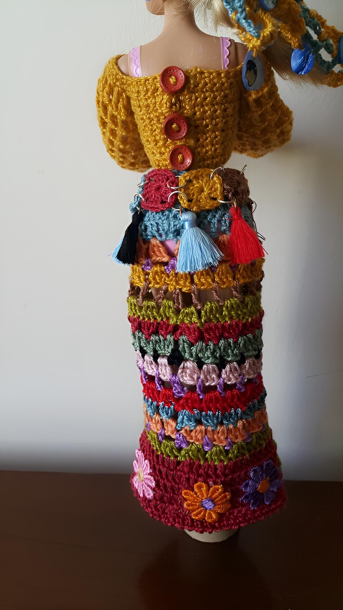 Ensemble unique Gypsy pour poupée Barbie fait au crochet en un seul exemplaire