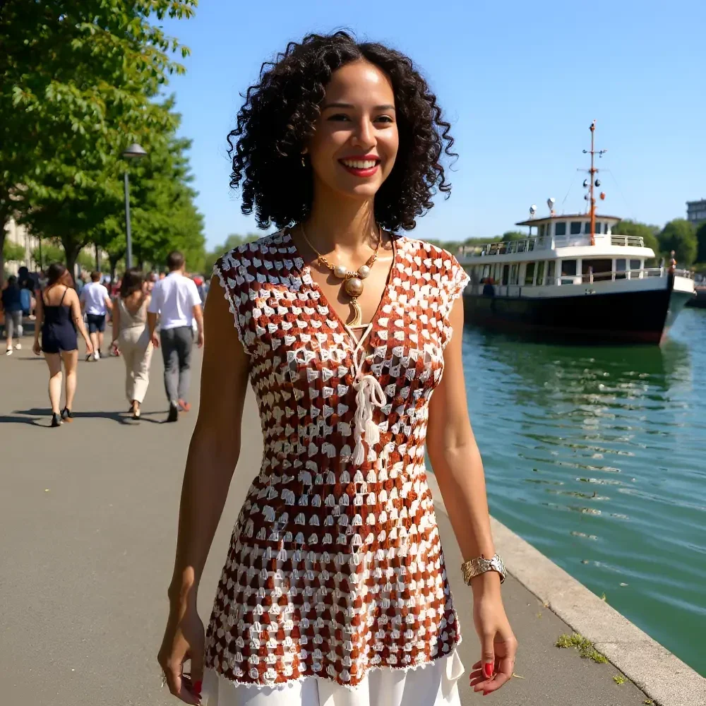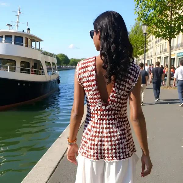 Haut Couleur café en crochet fait main en un seul exemplairePièce uniqueTaile : 38 / 40Composition : 100% cotonLavage : mainLaçage par devant
