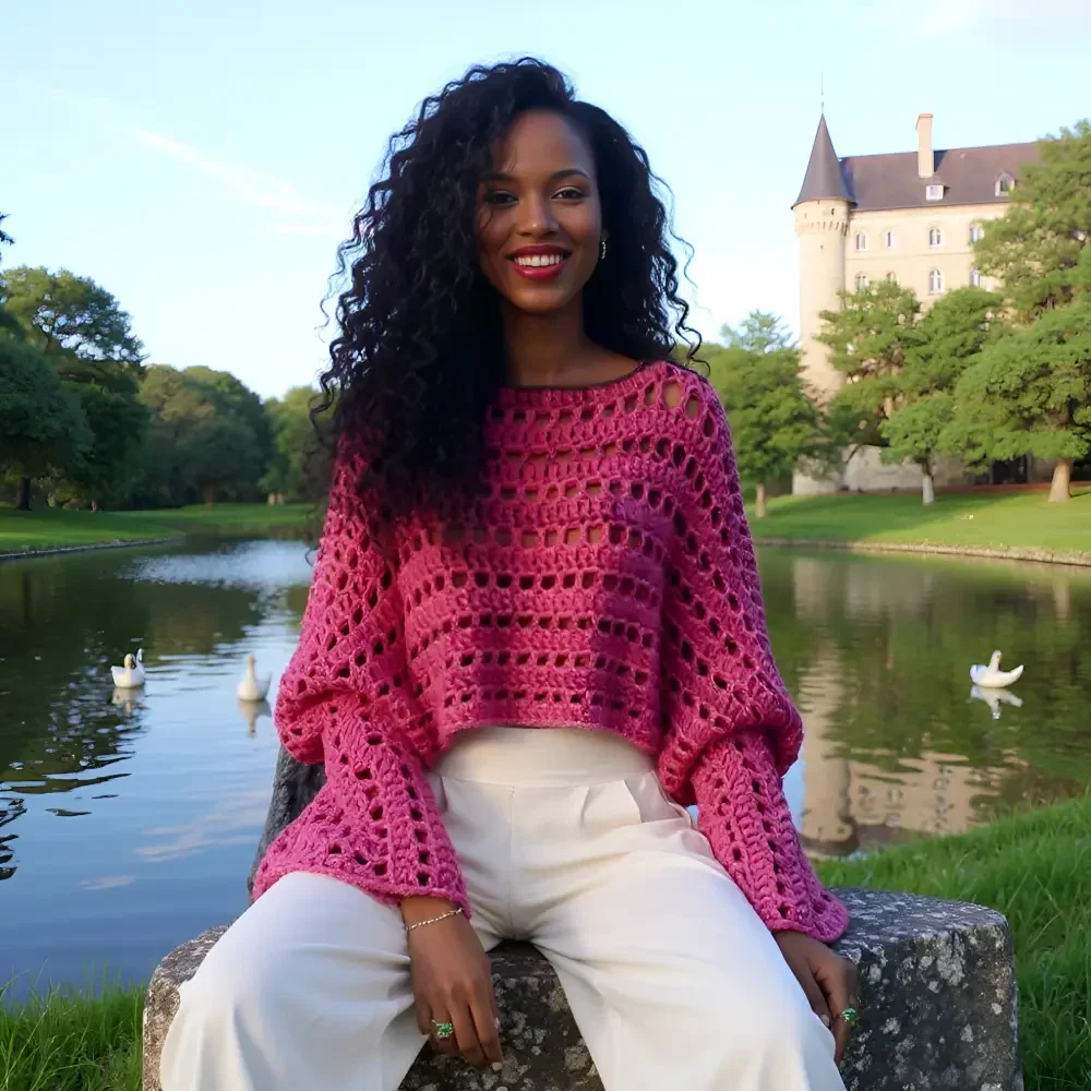 Pull Oulatumi fait main au crochet en un seul exemplaireTaille : 38 à 42Composition : laine / acryliqueLavage : main
