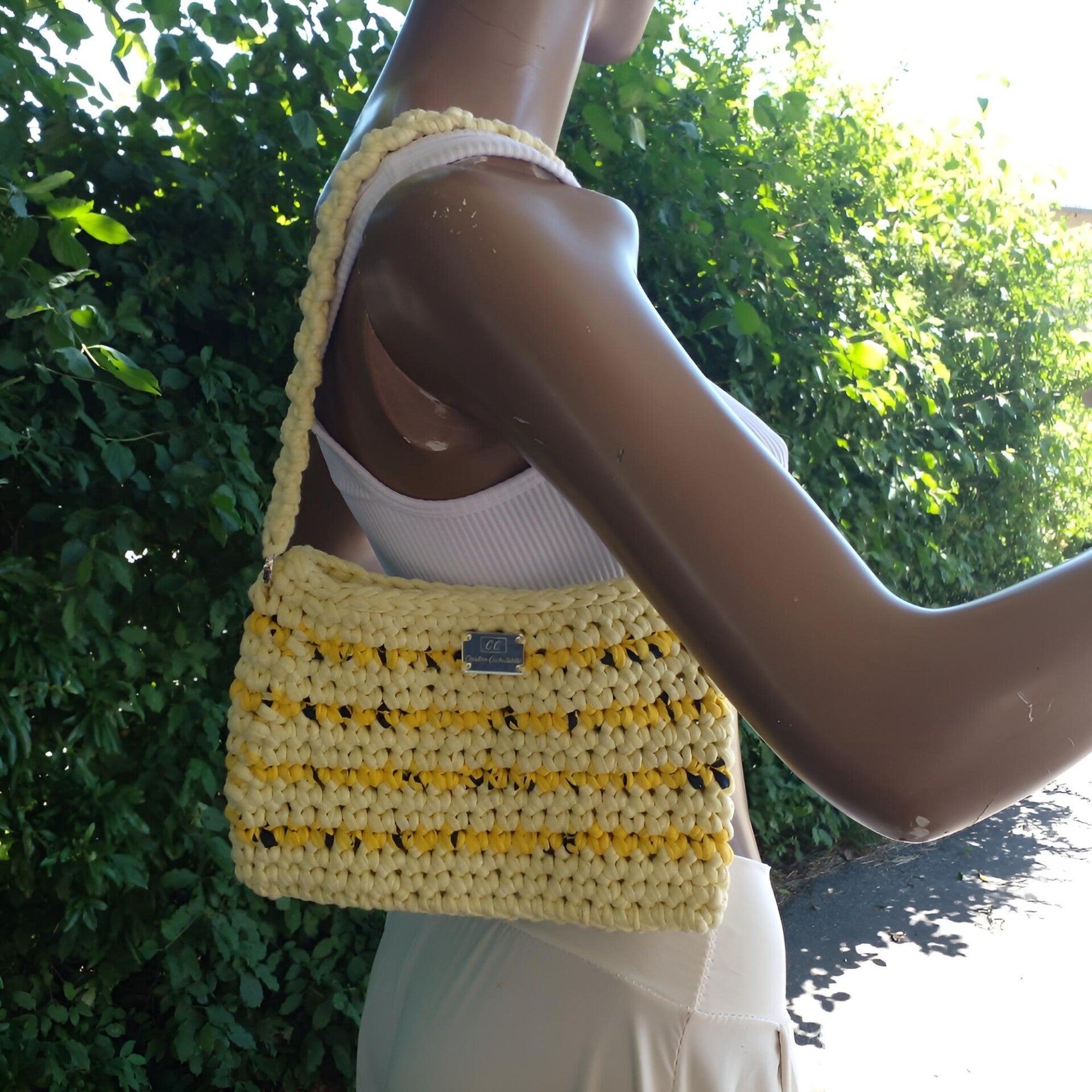 Sac à main Piou-piou en crochet fait main et non doubléPièce uniqueComposition : cotonFermeture par un aimantLongueur : 24 cmHauteur : 16 cm