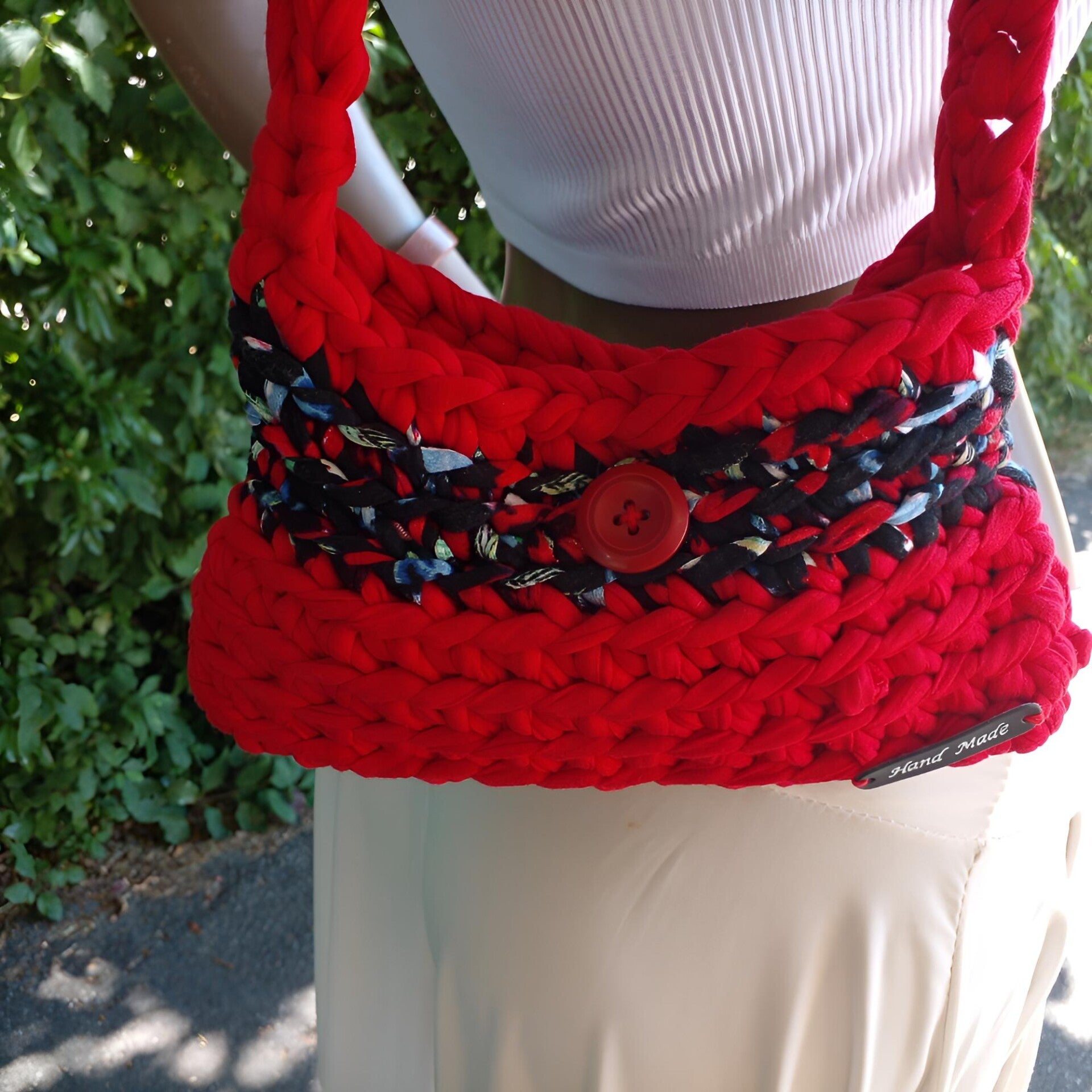Sac à main J'aime le rouge fait main au crochet en un seul exemplaire