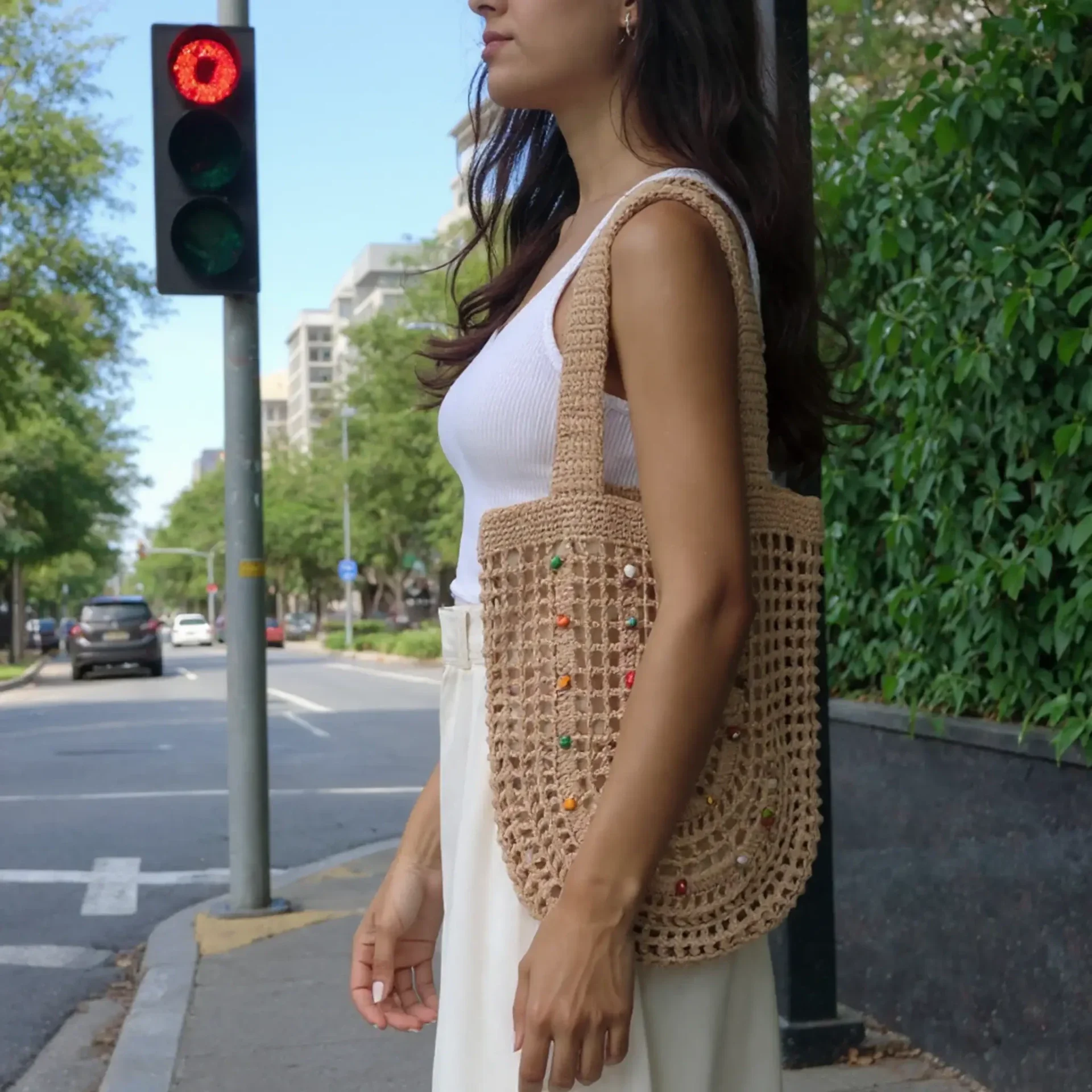 Sac de plage Bouboule fait main au crochet en un seul exemplaire