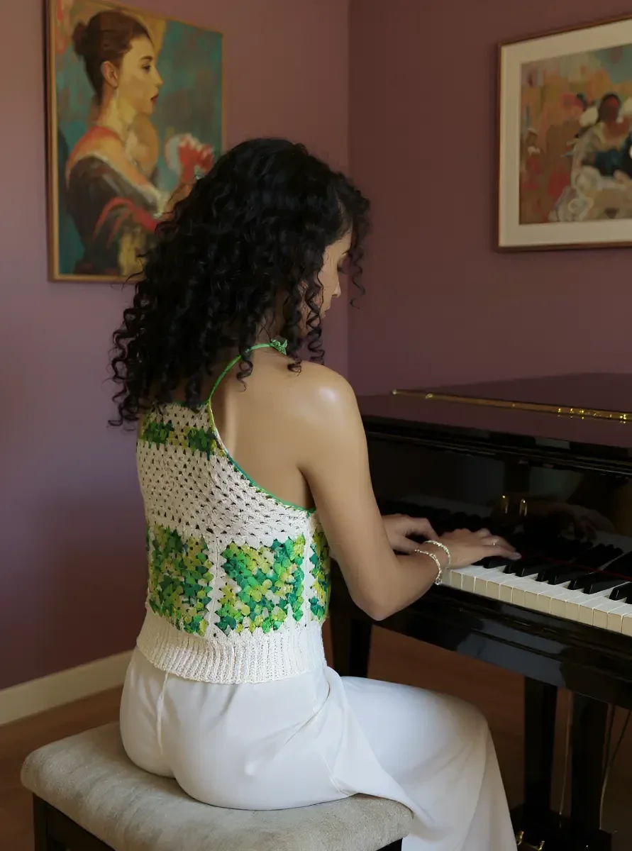 Haut Avocado fait main au crochet en un seul exemplairePièce uniqueTaille : 40 / 42Composition : 100% cotonLavage : main