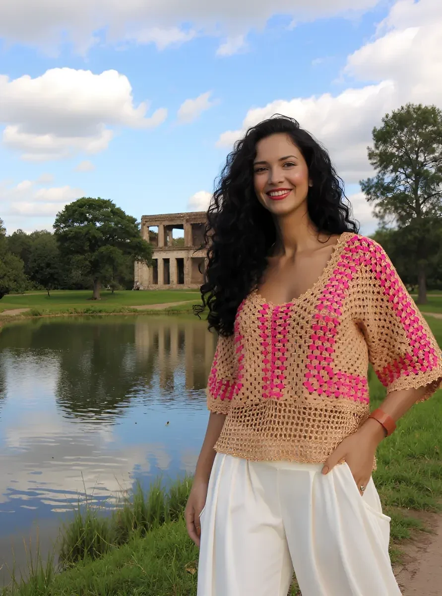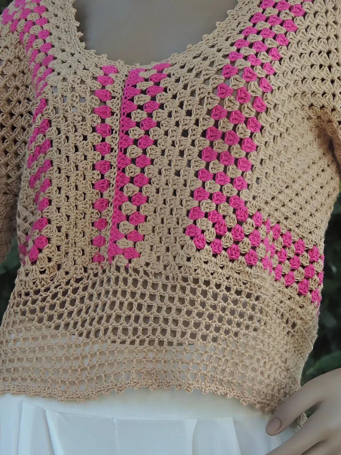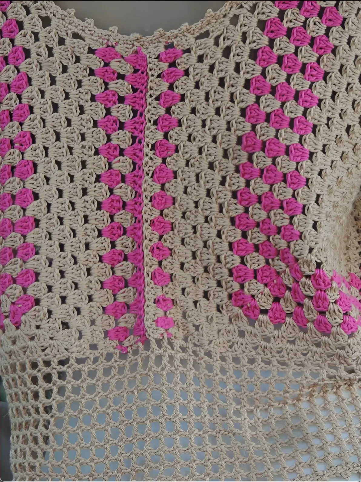 Haut Crémarosa fait main au crochet en un seul exemplairePièce uniqueTaille : 40 / 42Composition : 100% cotonLavage : main