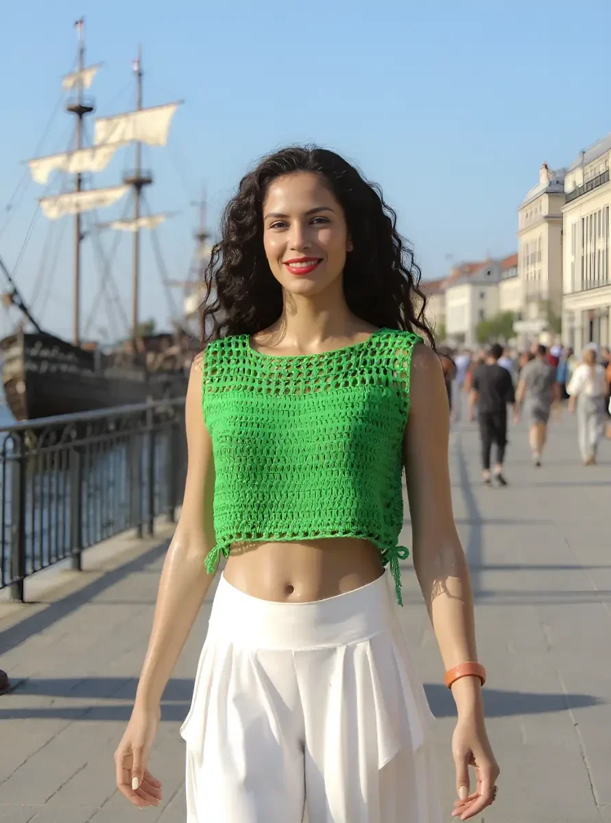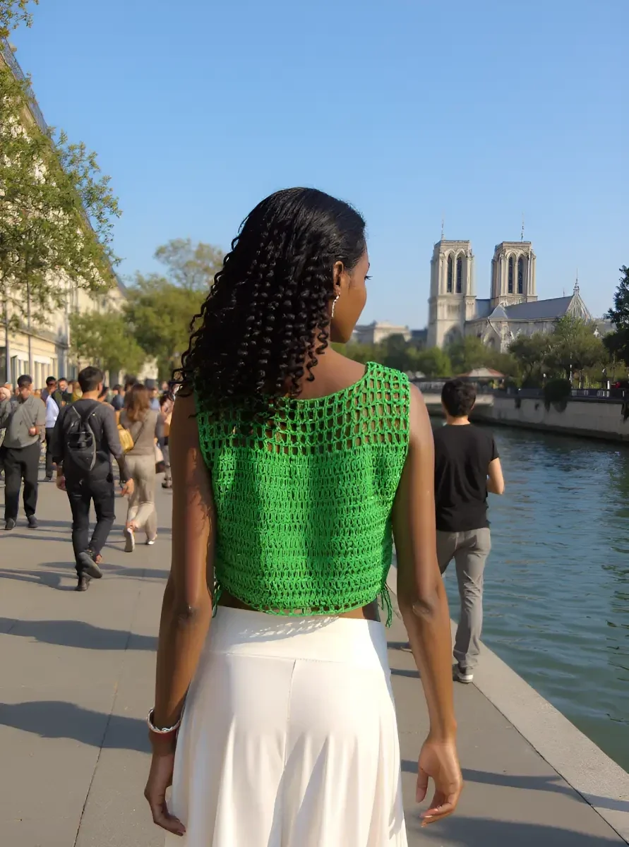 Haut Rainette fait main au crochet en un seul exemplairePièce uniqueTaille : 38 / 40Composition : 100% cotonLavage : main